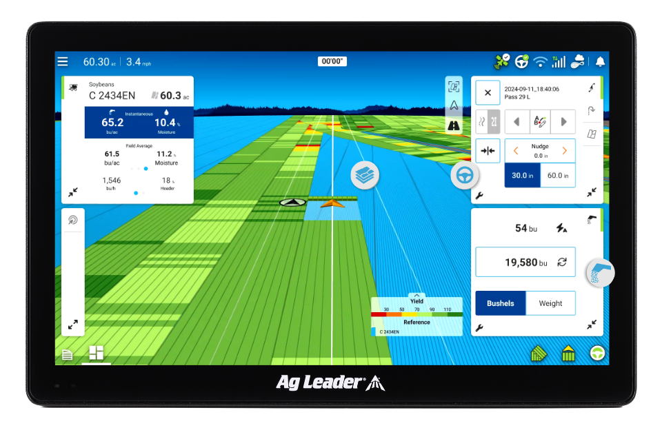 Sigue el progreso de la cosechadora con un mapa en vivo de la porción cosechada del campo desde la pantalla en el carro de grano y un iPad desde cualquier lugar. Sabe cuándo y dónde estar para operar eficientemente.